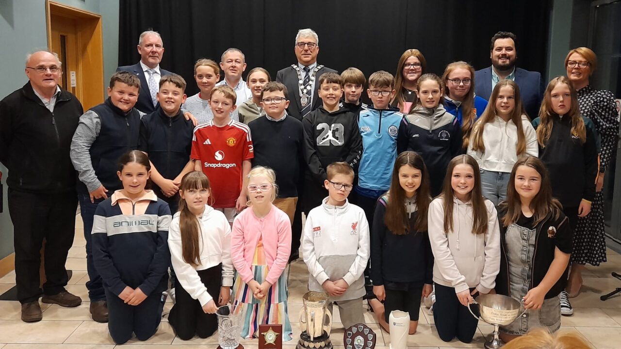 Recently the Chair of Fermanagh and Omagh District Council, Councillor John McClaughry, hosted a reception for Gaelscoil na gCrann Primary School in recognition of winning the All Ireland Schools Drama competition and Best Irish Medium School in Ireland.