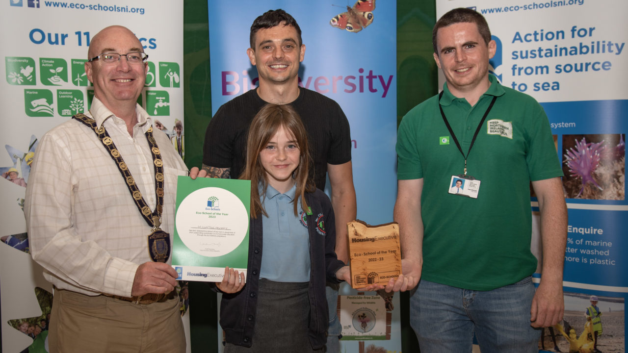 Teachers and pupils from across the council area have been recognised for their outstanding environmental work at this year’s Eco-Schools Green Flag Awards. 24 local schools received Green Flags with special recognition for the Eco-Teacher and Eco-Pupil of the Year. The awards have been supported by the Northern Ireland Housing Executive and Nexus.