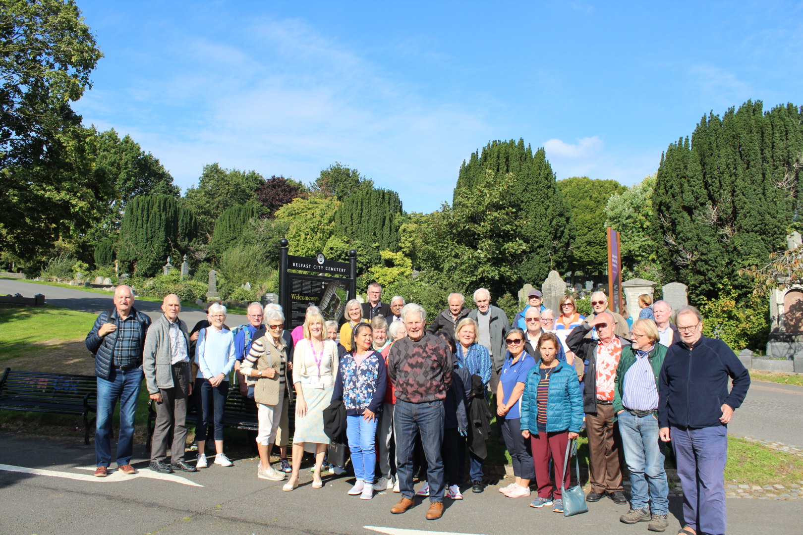 On 20 September 2022, forty people, including members of Fermanagh and Omagh Interfaith group, took part in a free guided tour of Belfast City Cemetery, delivered by former Belfast Mayor and author, Tom Hartley. The cemetery contains graves of individuals from a variety of backgrounds and the tour reminds us that the political and cultural identity of 19th century Belfast was complex and layered. The tour challenged stereotypes, provided a fresh approach to the history of Belfast and is key to understanding the city’s past.