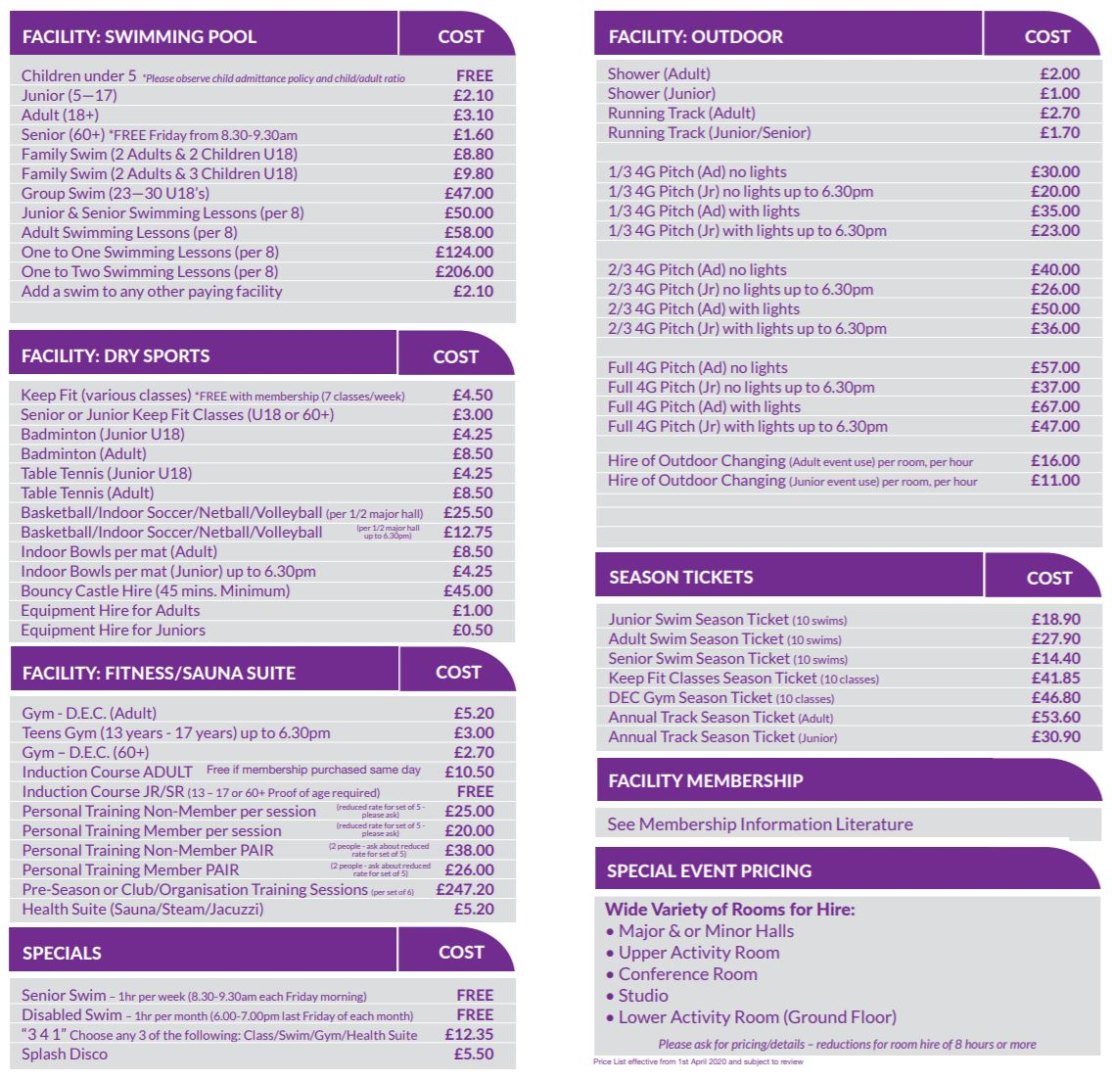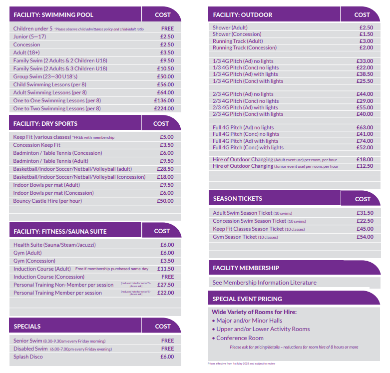 *Please note Concession rate for any Court Sports hire or 4G hire is only available up to 6.30pm. After this time the standard Adult rate will apply.