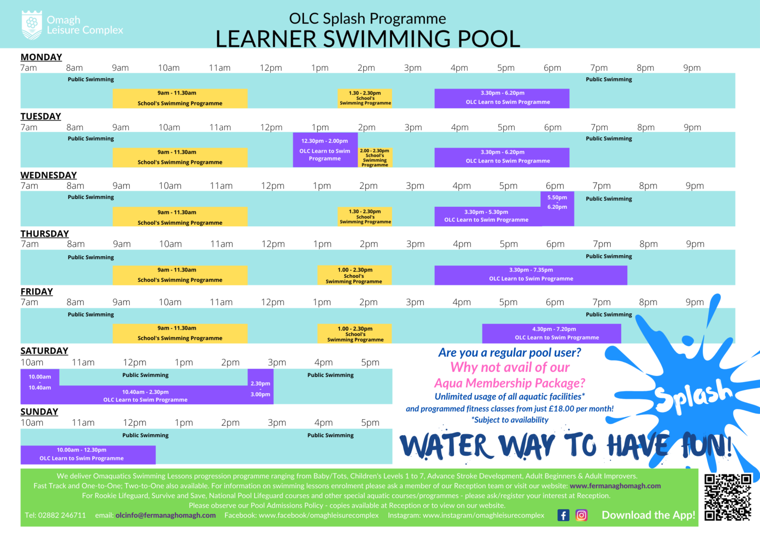 Please note the following times when our Learner Pool is fully closed to public swimmers:
