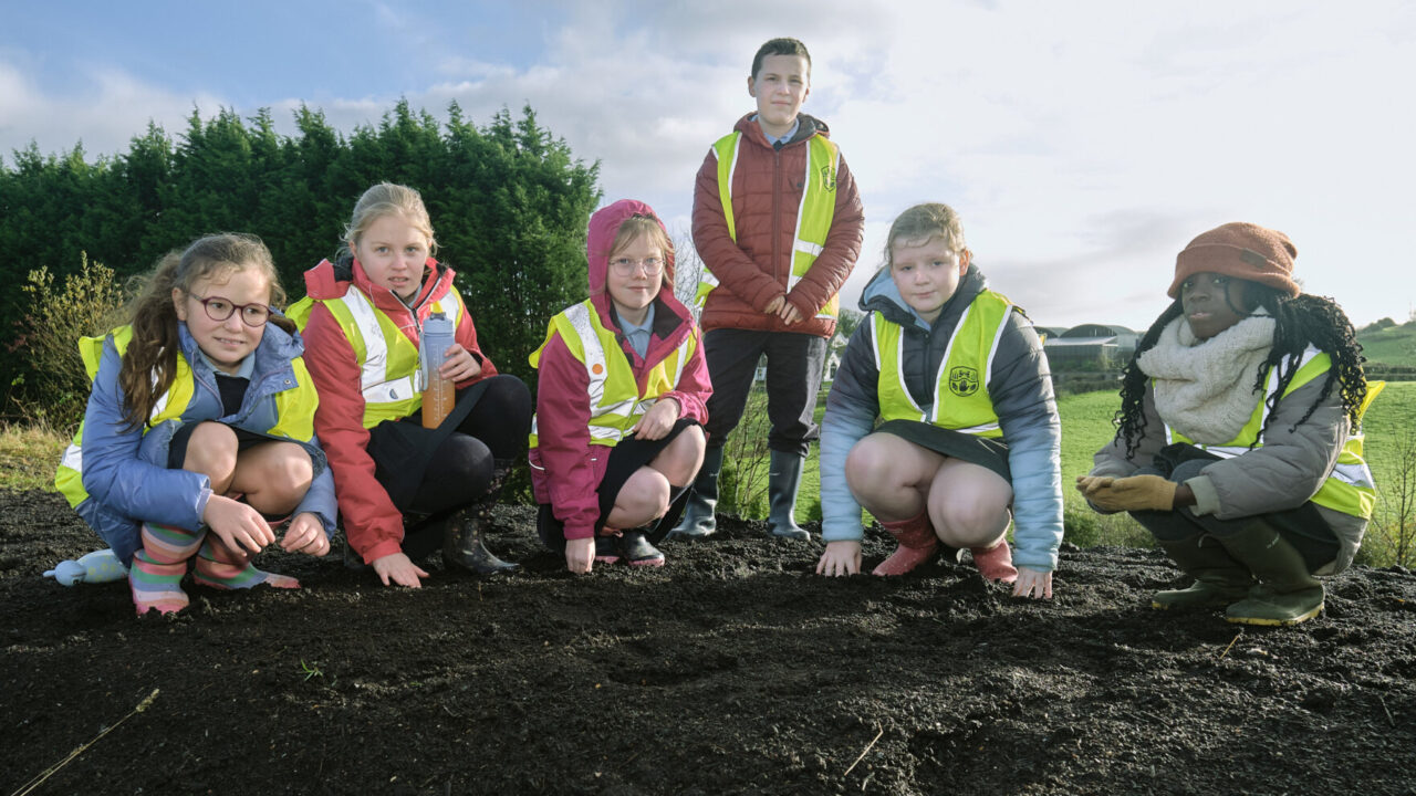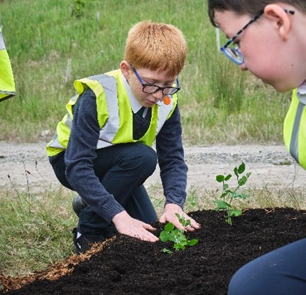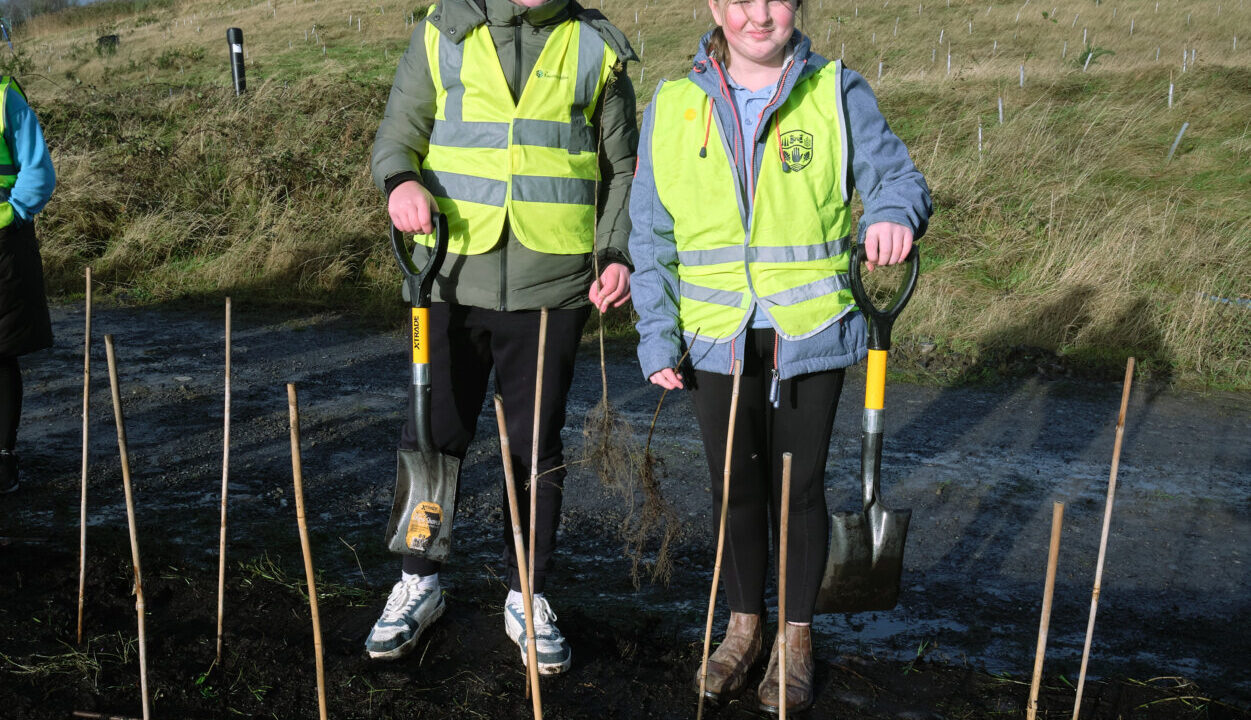 Students from the schools in Omagh, who will be part of the Strule Shared Education Campus, joined FODC Climate Team and members of the Omagh Rotary Club to plant trees at Arleston Park.