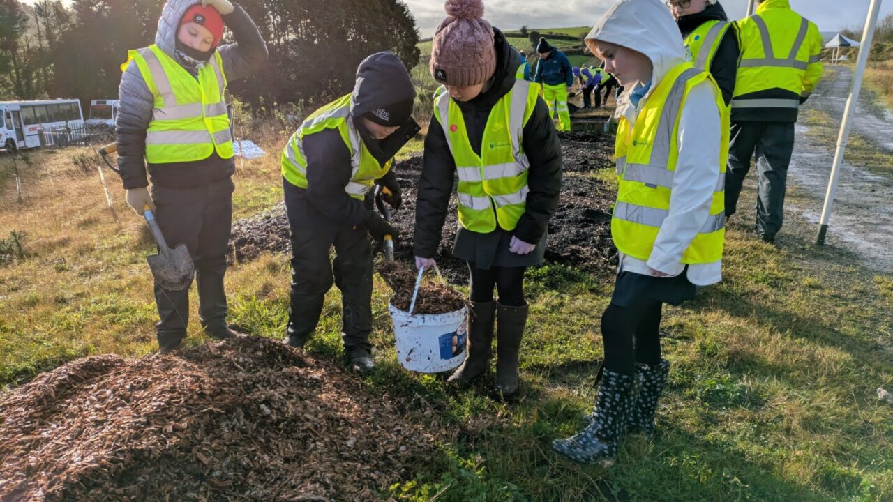 With funding from The Executive Office District Councils Good Relations programme and the Northern Ireland Electricity Networks and Conservation Volunteers free trees for schools programme, trees were planted in this popular shared space in Omagh to create avenue planting and extend the woodlands and hedgerows. Participants planted a variety of native and pollinator-friendly trees to support local wildlife and help tackle climate change.
