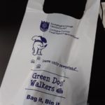 Always pick up dog waste and put it in the nearest litter bin. You can use any plastic bag and any litter bin, including your black bin at home. Don’t put dog waste in your blue or brown bins as this will contaminate them.