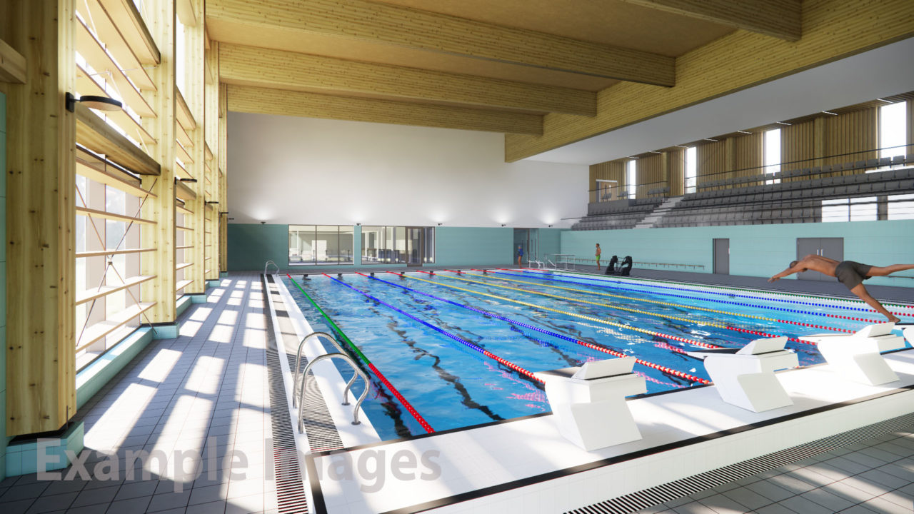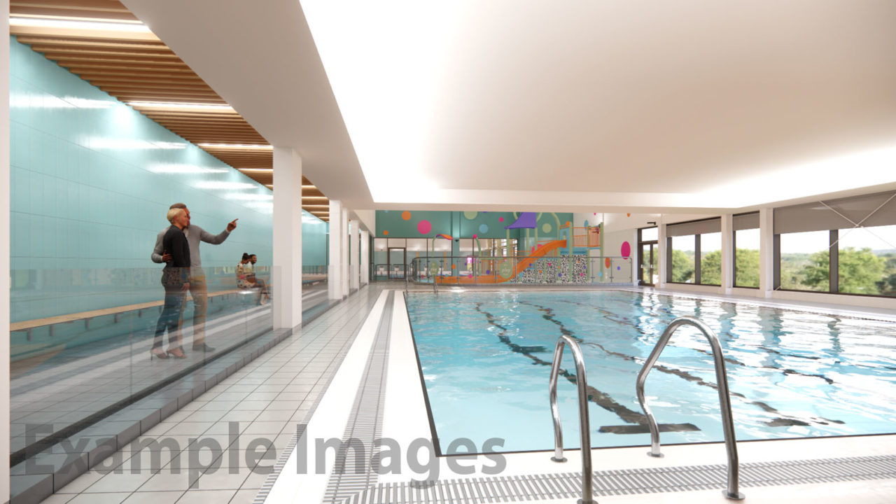 State of the art leisure, health and wellbeing hub; 8 lane swimming pool; Separate learner pool; Splash pad area for young children; Gym facilities; Community and multipurpose spaces; Soft play & sensory room.