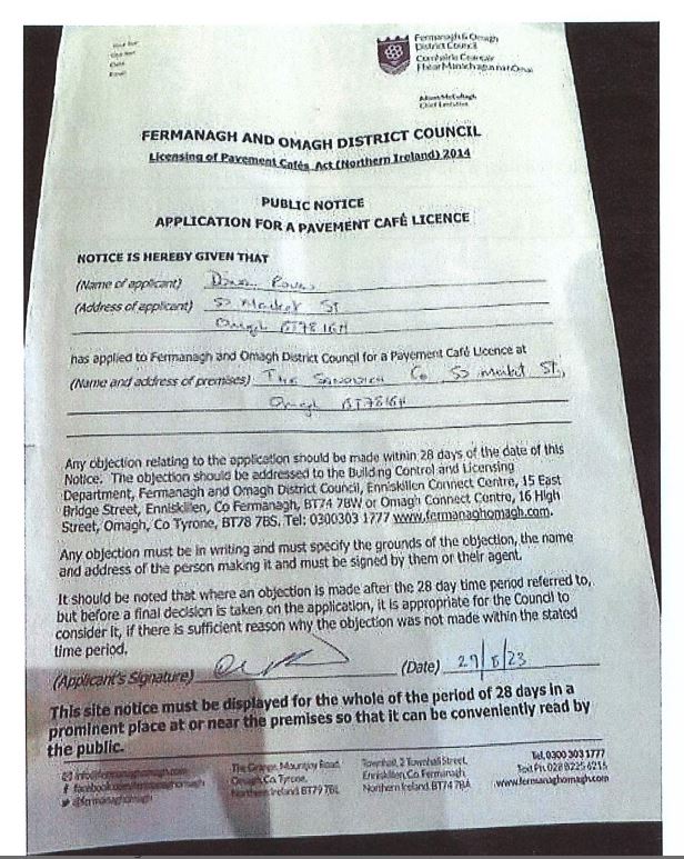 Fermanagh and Omagh District Council promotes the use of pavement cafés within the district area and encourages business owners to apply for a licence.